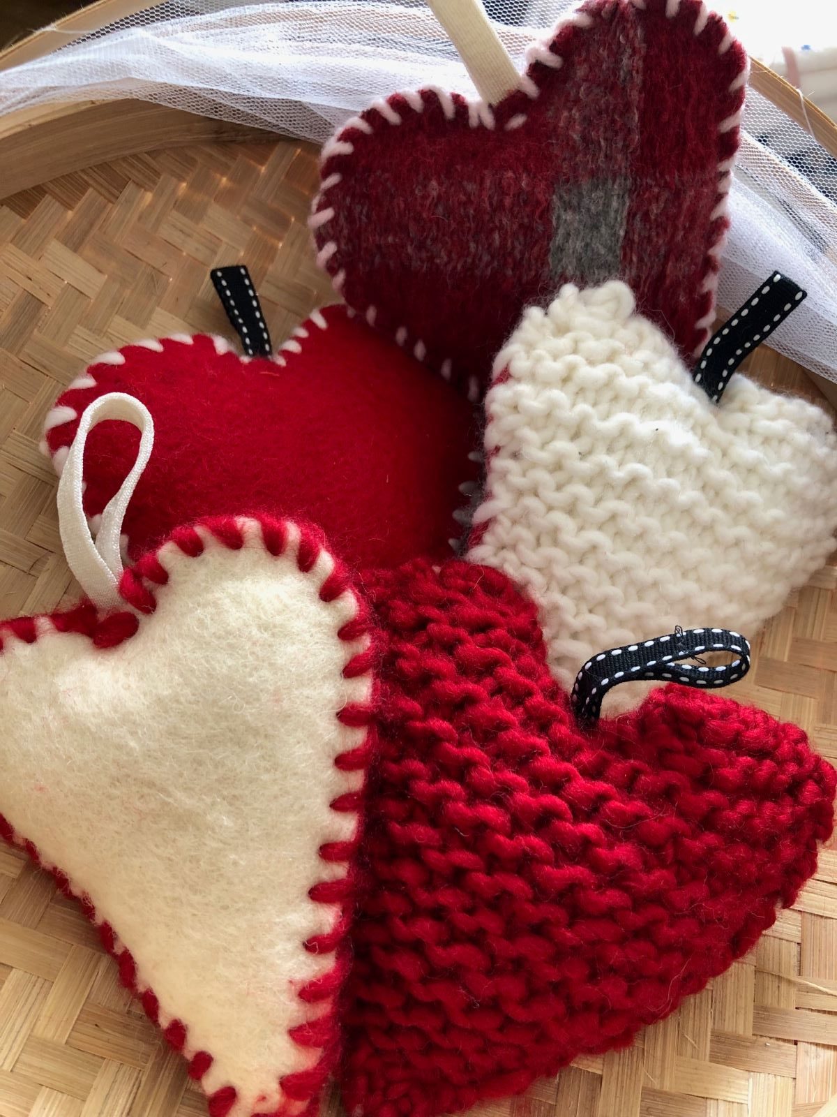 Cuore in maglia e feltro realizzato interamente a mano