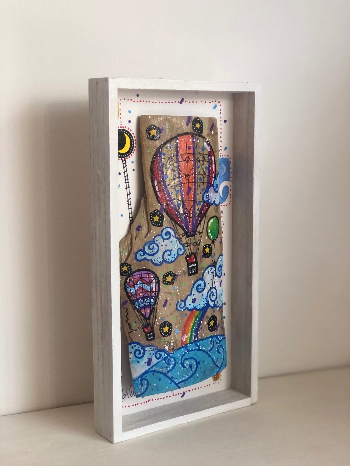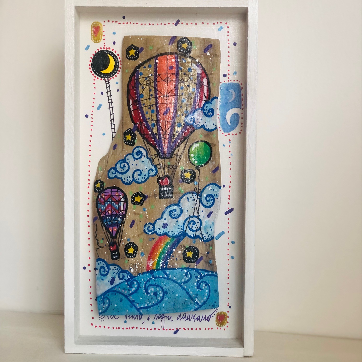 I ” Portati dal Mare” sono delle creazioni realizzate con legni di recupero, trattati con appositi prodotti per il legno e dipinti a mano