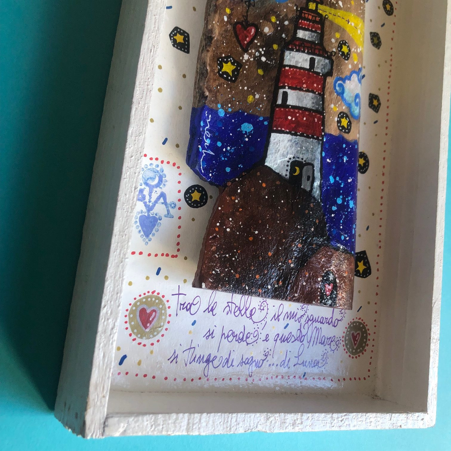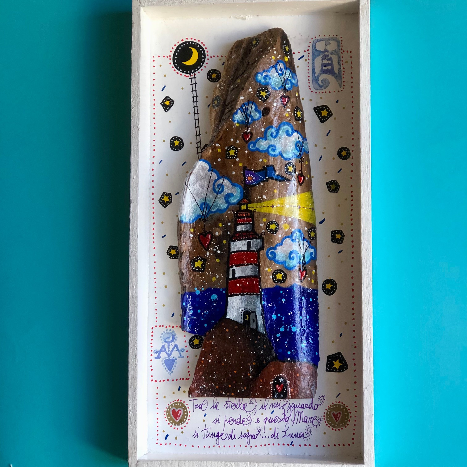 I ” Portati dal Mare” sono delle creazioni realizzate con legni di recupero, trattati con appositi prodotti per il legno e dipinti a mano